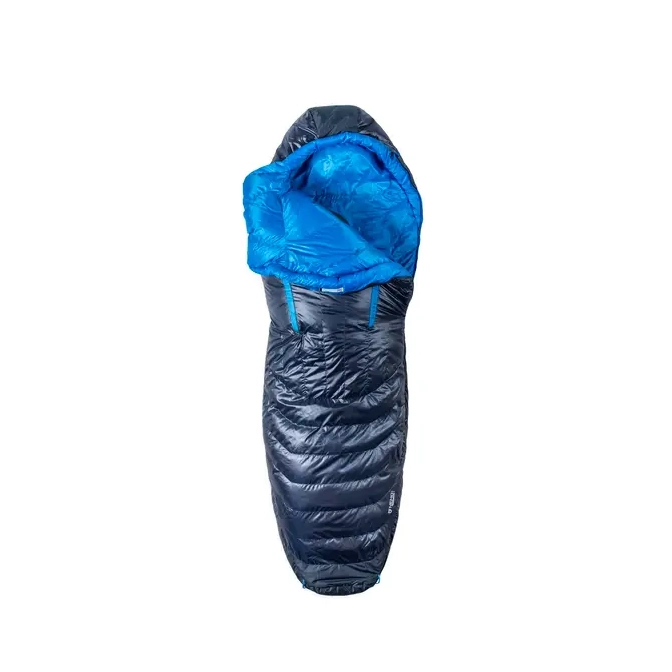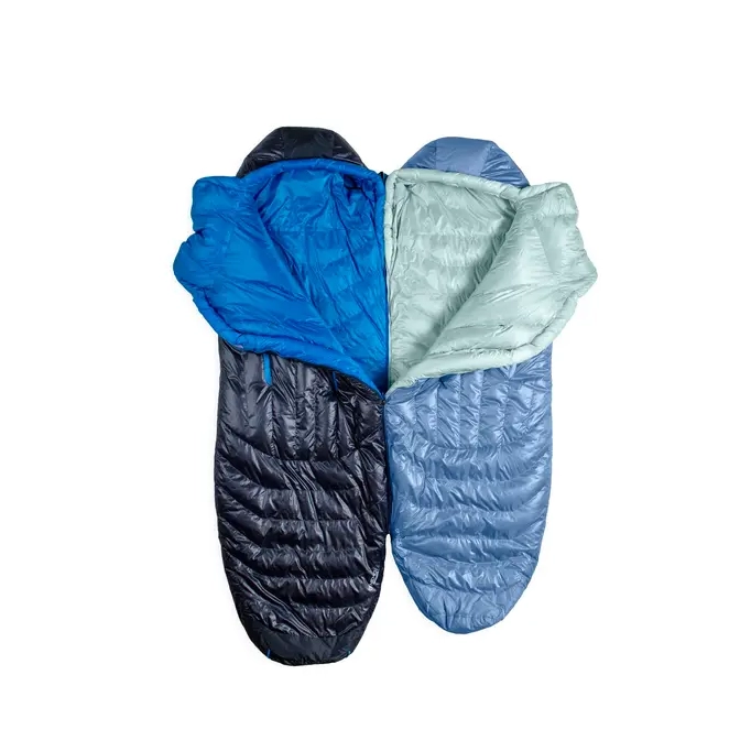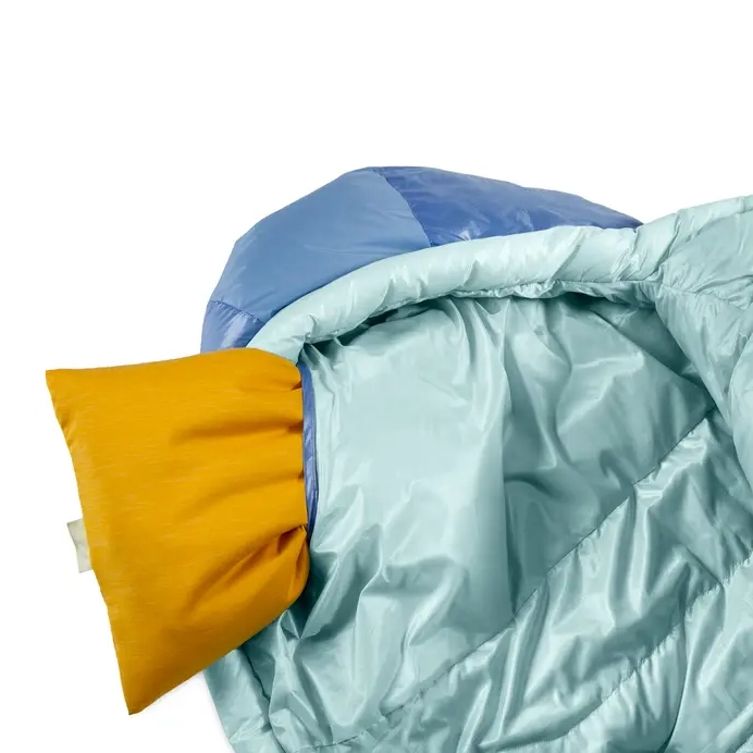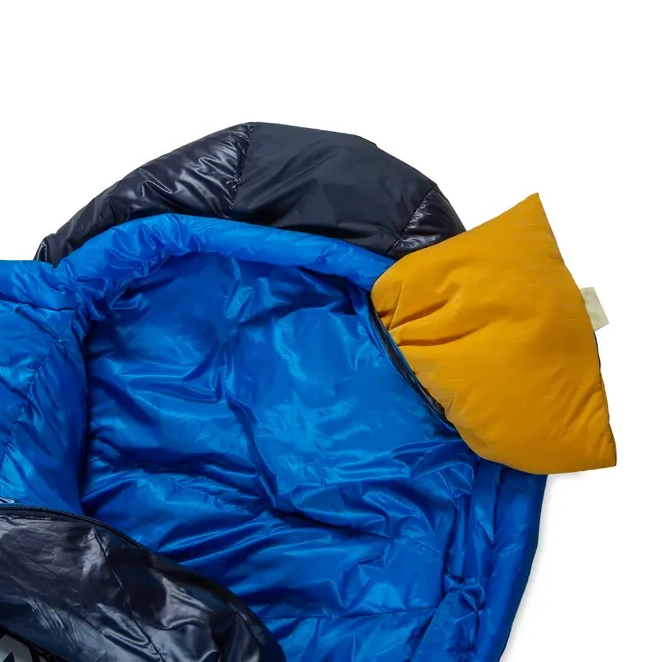 - 兜帽和腳位均採用不含 PFAS 防水處理的可回收材料加固,以防止帳篷冷凝水進入睡袋的面料中。