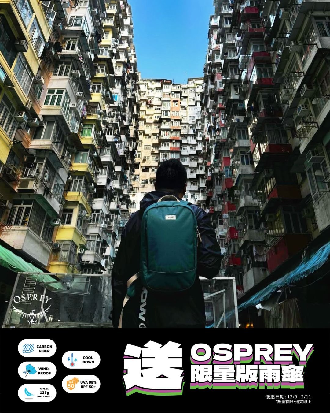現凡購買 Arcane系列指定產品,即送Osprey 限量版碳纖防風防曬摺疊傘