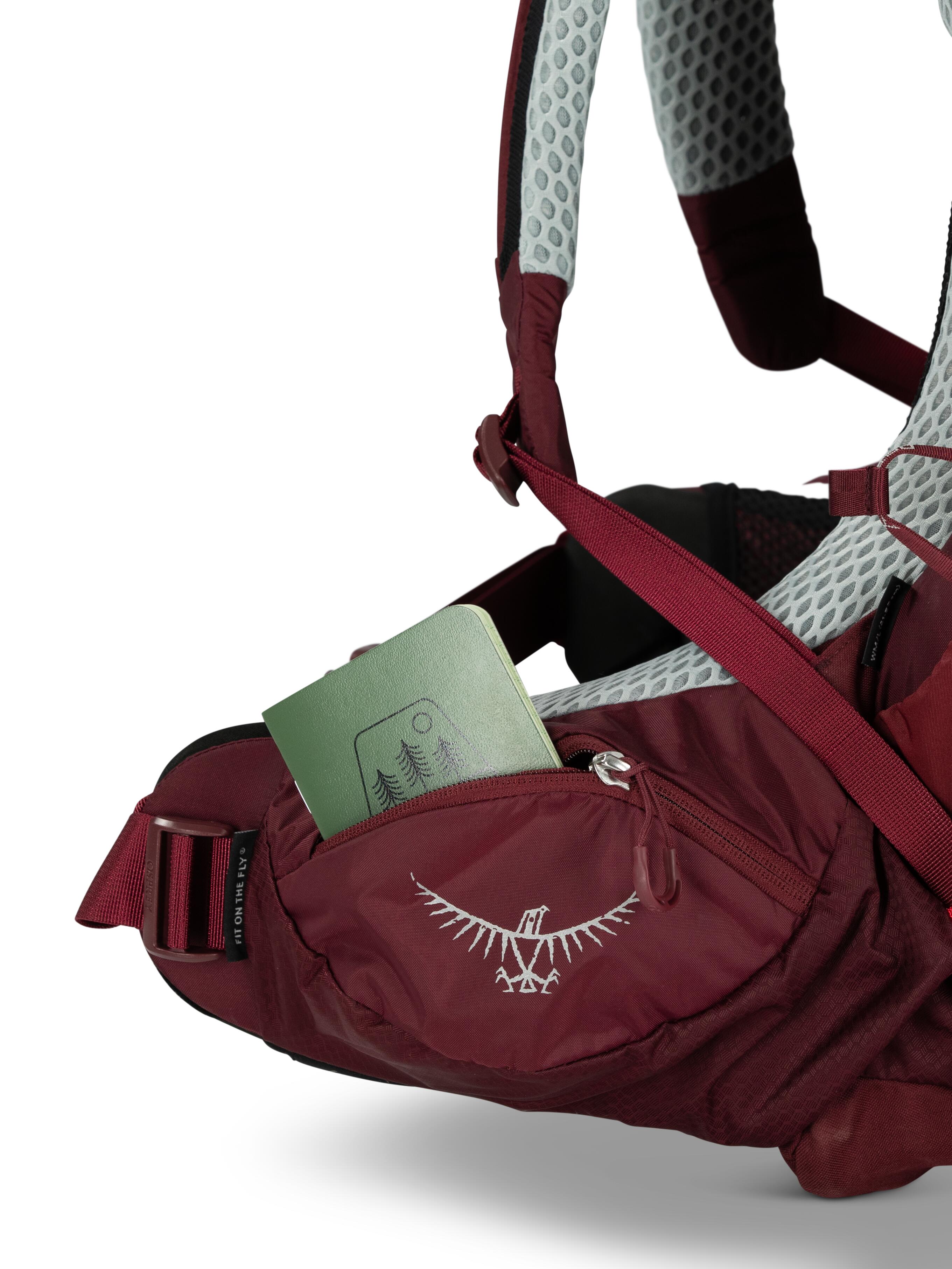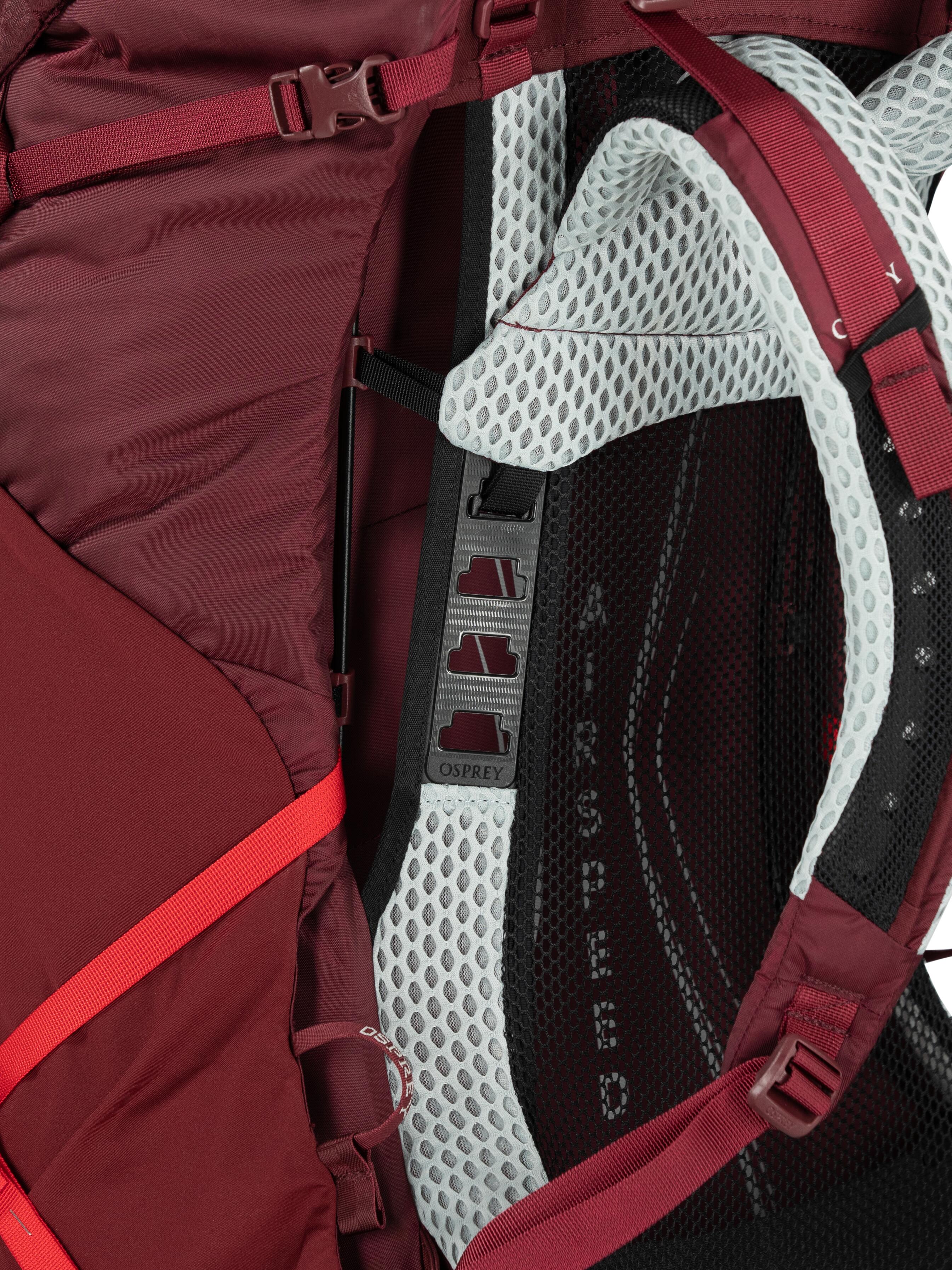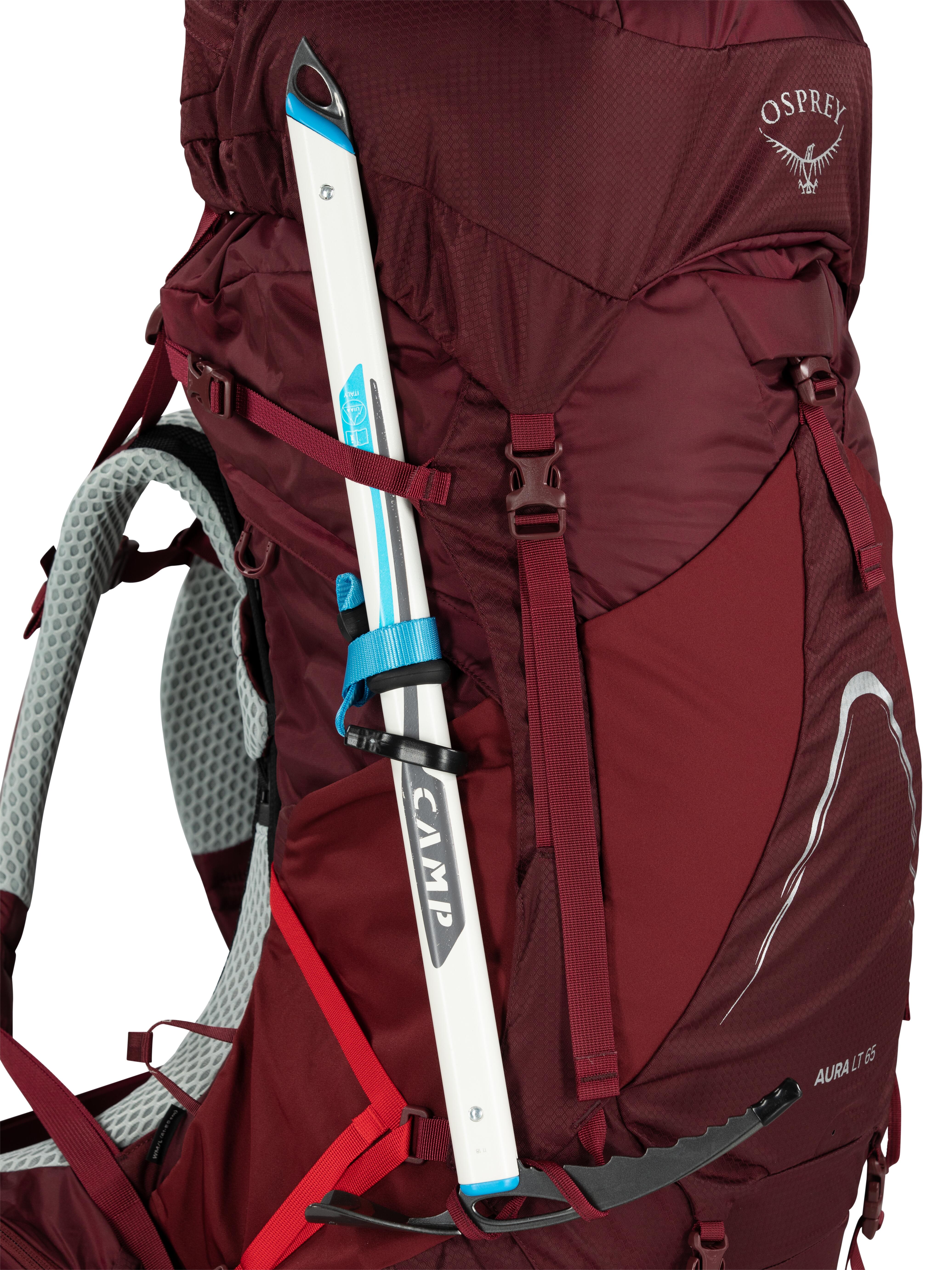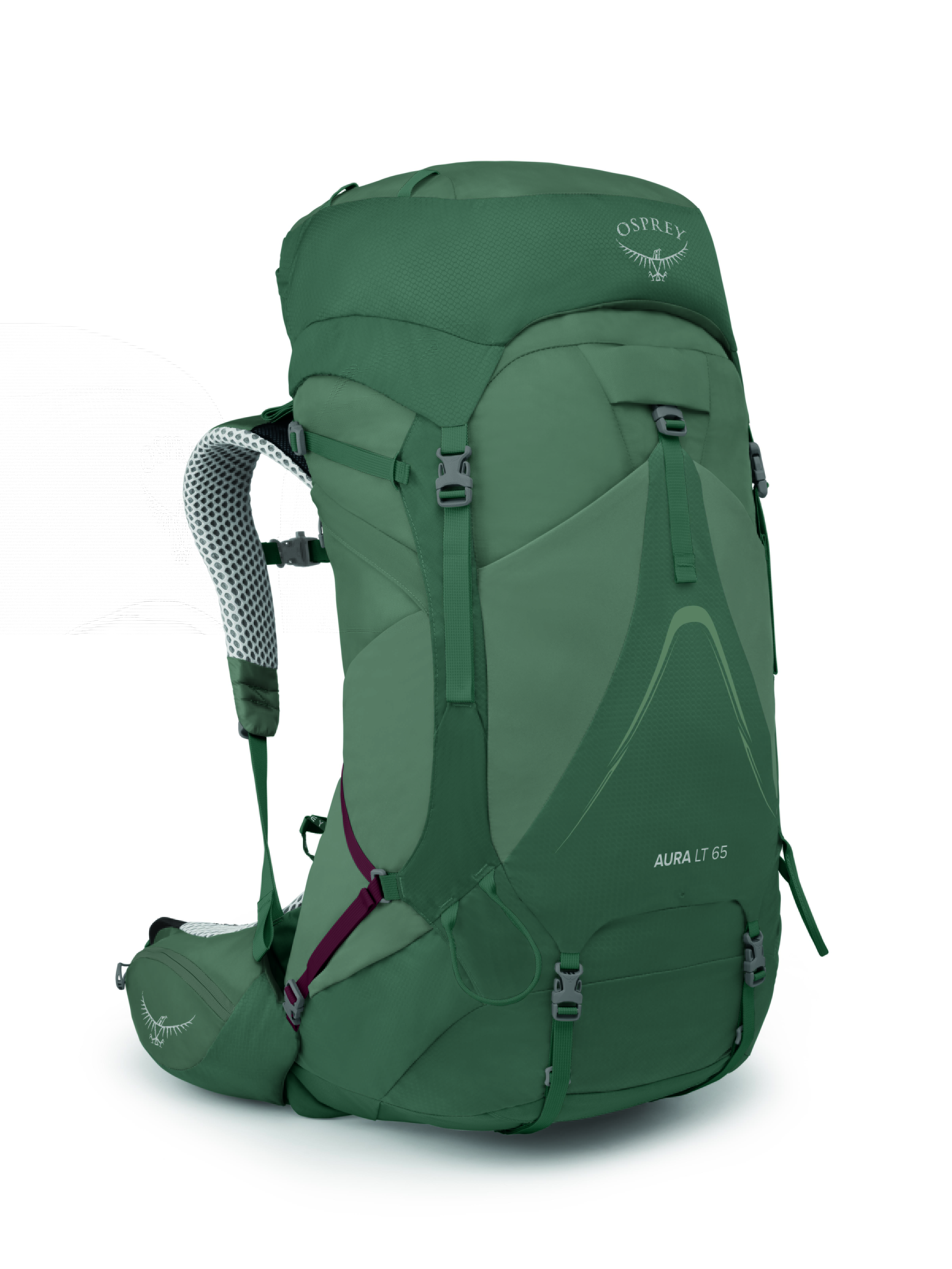 Osprey Aura AG LT 65 採用輕量化設計,結合革命性AntiGravity懸掛系統與3D張力網眼背板,專為需求高透氣與舒適度的女裝背包客打造。它在精簡外型下保留優異的背負舒適與容量,適合週末短途探險及多日遠征,具備集成雨套、側面拉鍊開口、浮動頂蓋和多功能收納口袋。採用bluesign®認證回收面料,兼顧環保與耐用,是技術型輕裝背包的理想之選。