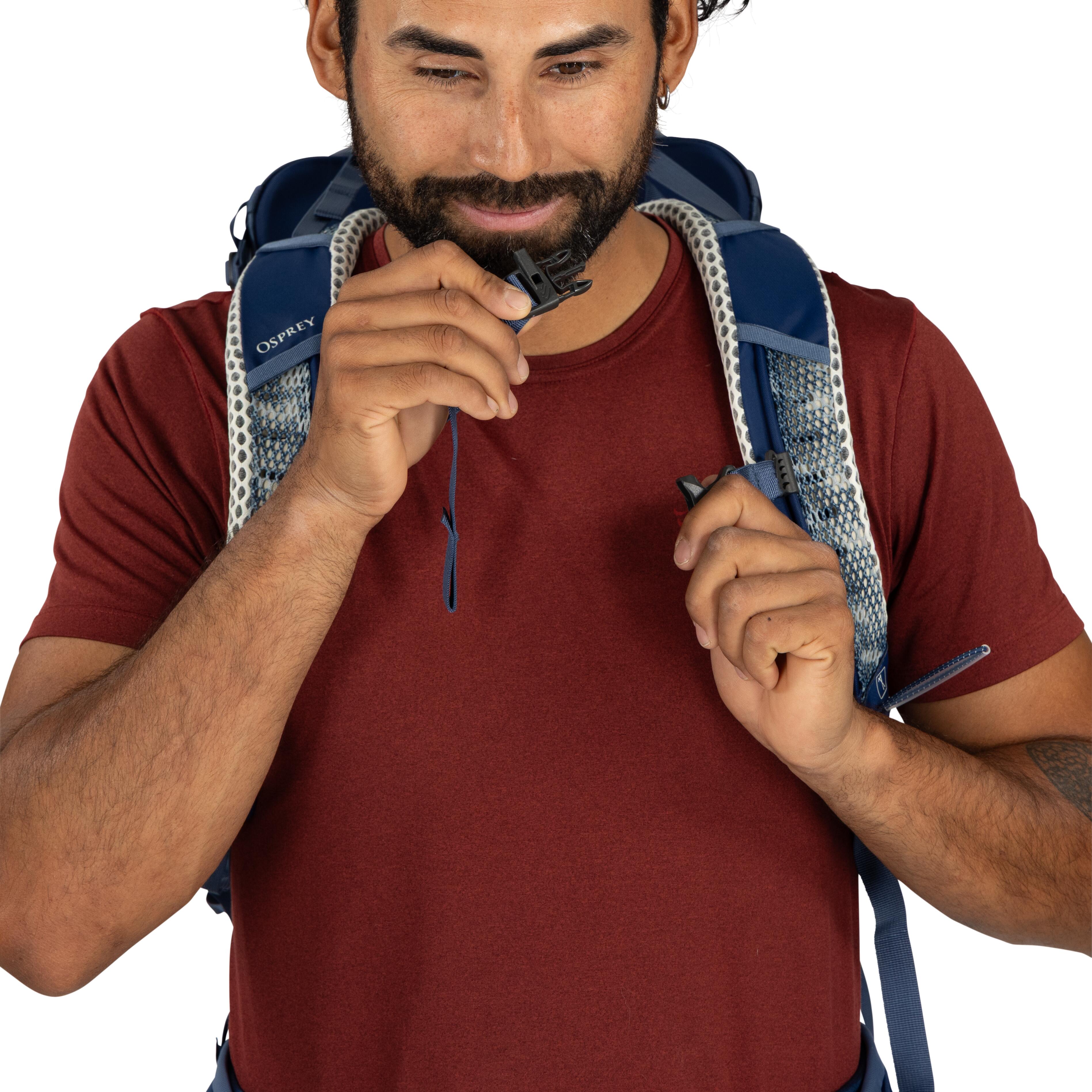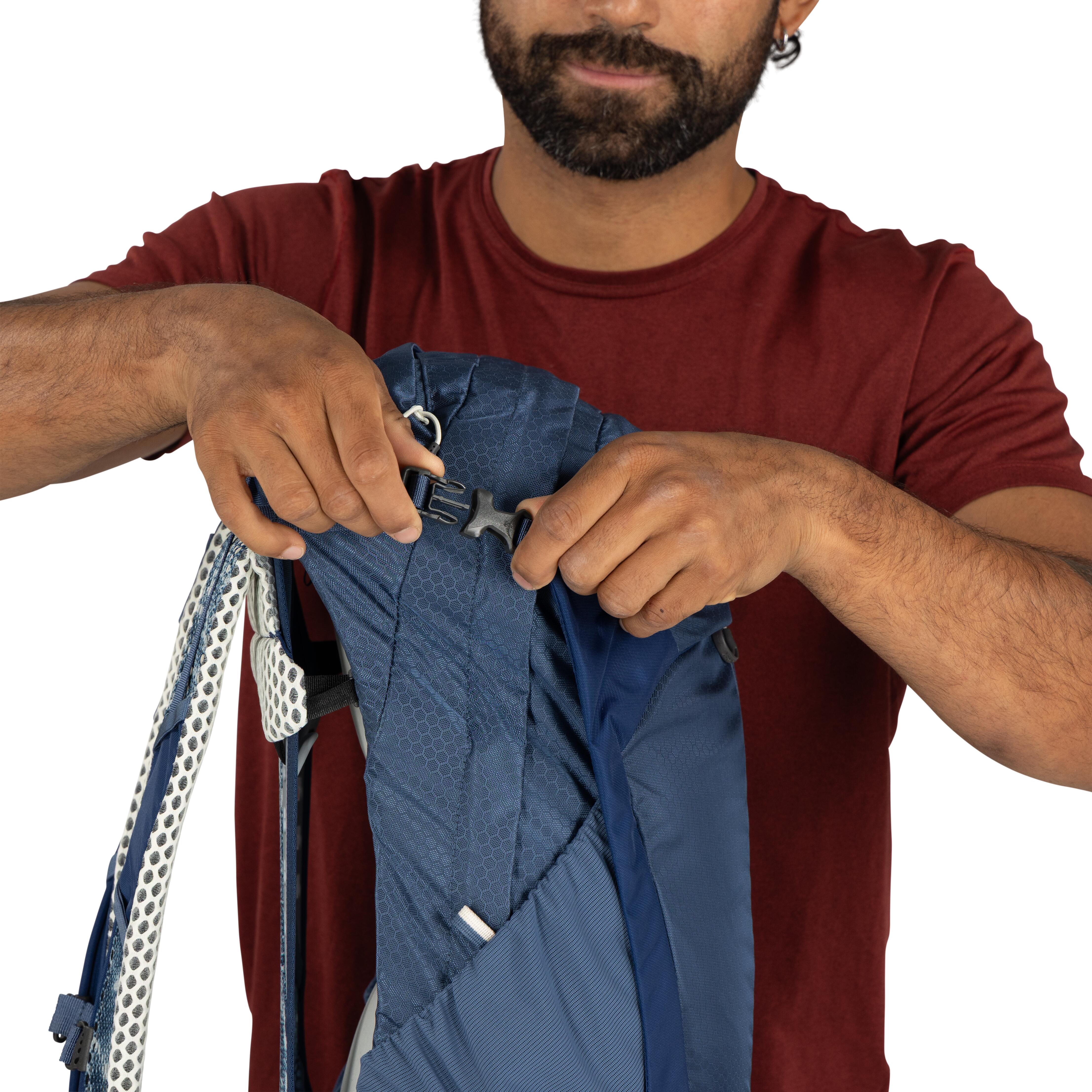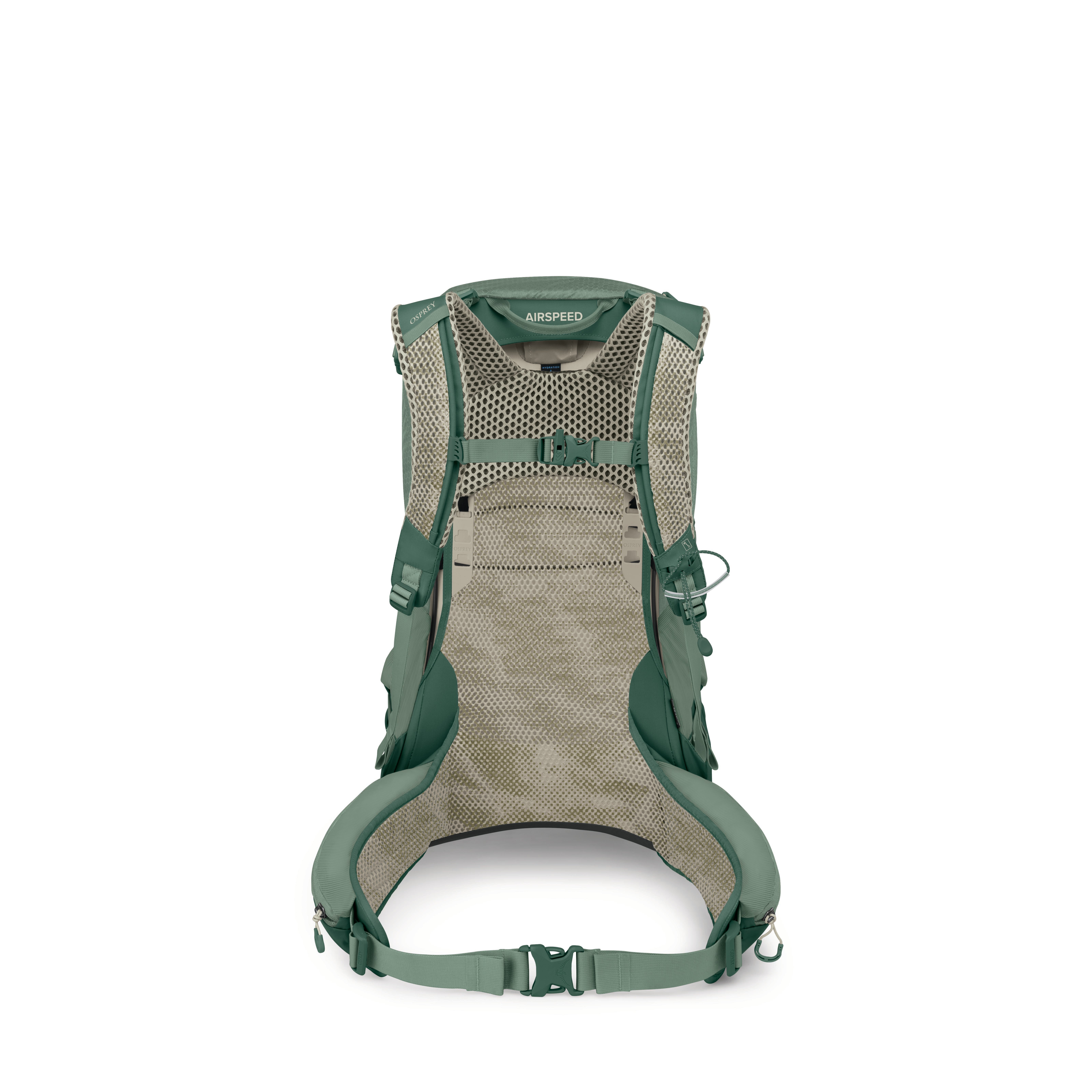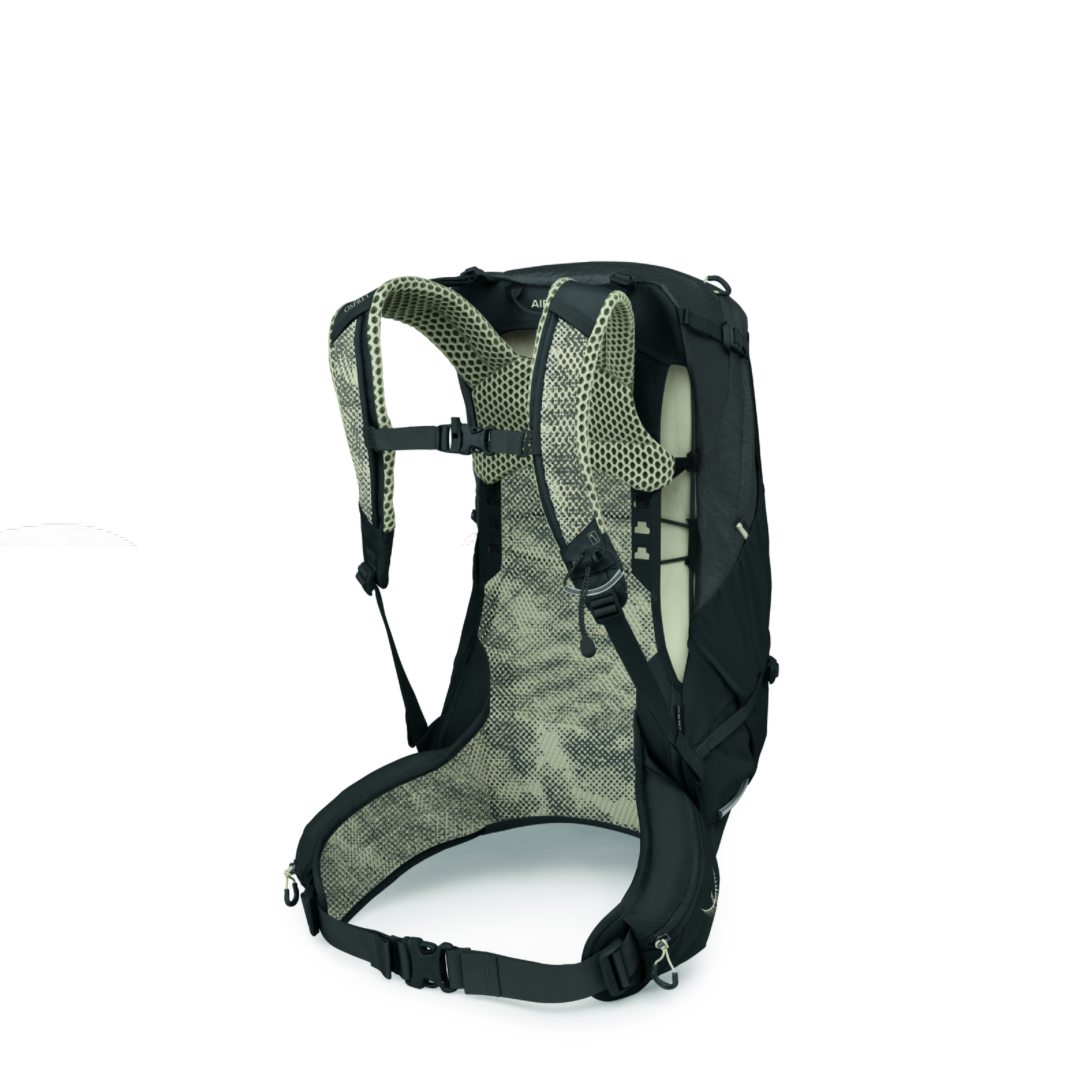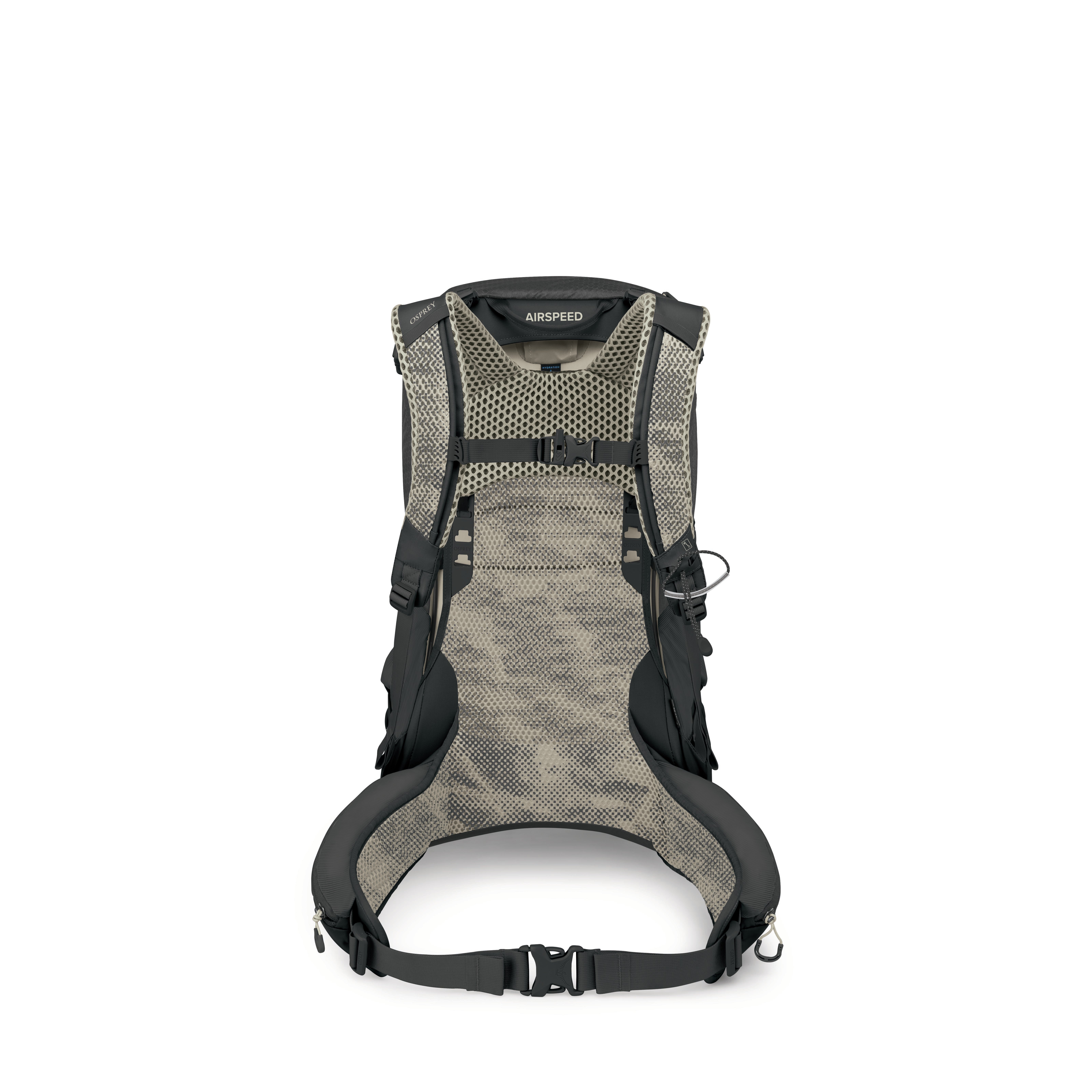 Stratos 24 採用 AirSpeed™ 張力網狀背板,搭配 LightWire 周邊框架,將背包重量推離背部,形成持續氣流對流,大幅提升背部通風,減少出汗與悶熱感。Molded Ladder 軀幹調節系統可調節 4 英寸(約 10cm),適用範圍約 43–56cm(17–22 in),確保精準貼合。肩帶與腰帶均採用高透氣模切 EVA 泡棉,包裹寬間隔網布,提供全天候舒適承載。腰帶 ErgoPull 閉合系統確保緊密貼合,提升負載轉移效果。