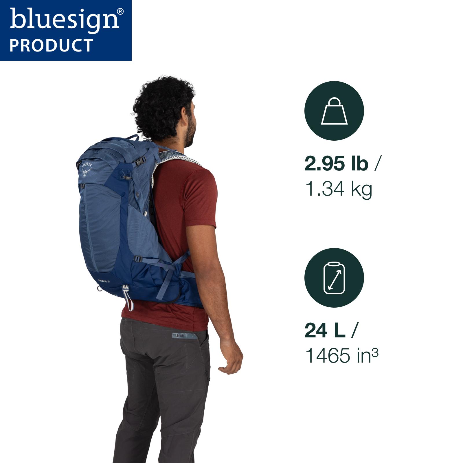 Osprey Stratos 24 雲層戶外登山背包(2026 新版)是專為男性單日或長程徒步者設計的技術型背包,容量 24L,重量約 1.34kg。搭載 AirSpeed™ 懸掛網架背板與 Molded Ladder 軀幹調節系統,提供高度通風與精準貼合。面板式主艙開口方便整理,內建防雨罩與水袋套,並採用 100% 回收尼龍與無 PFAS 防潑水塗層,兼顧耐用與環保
