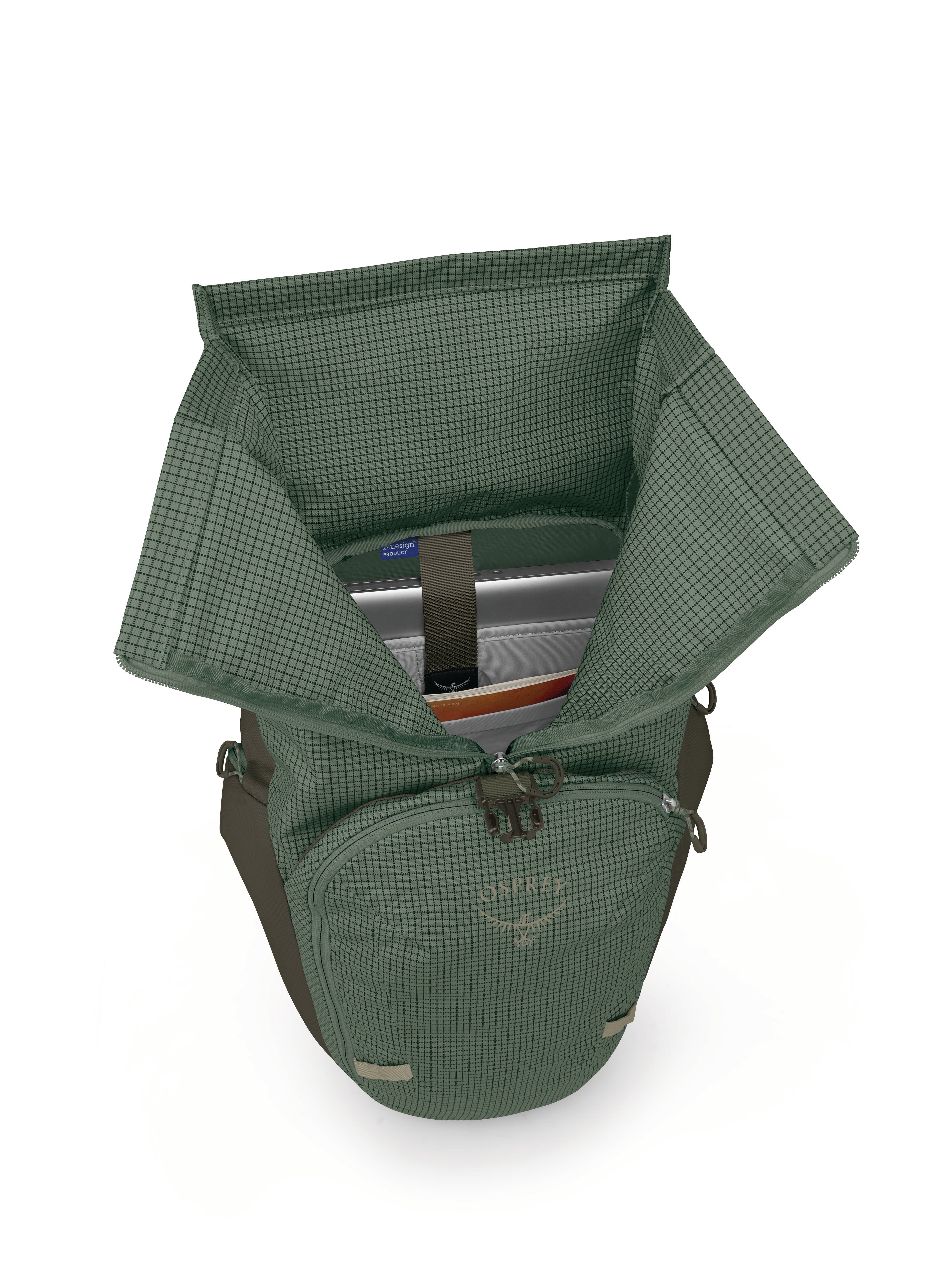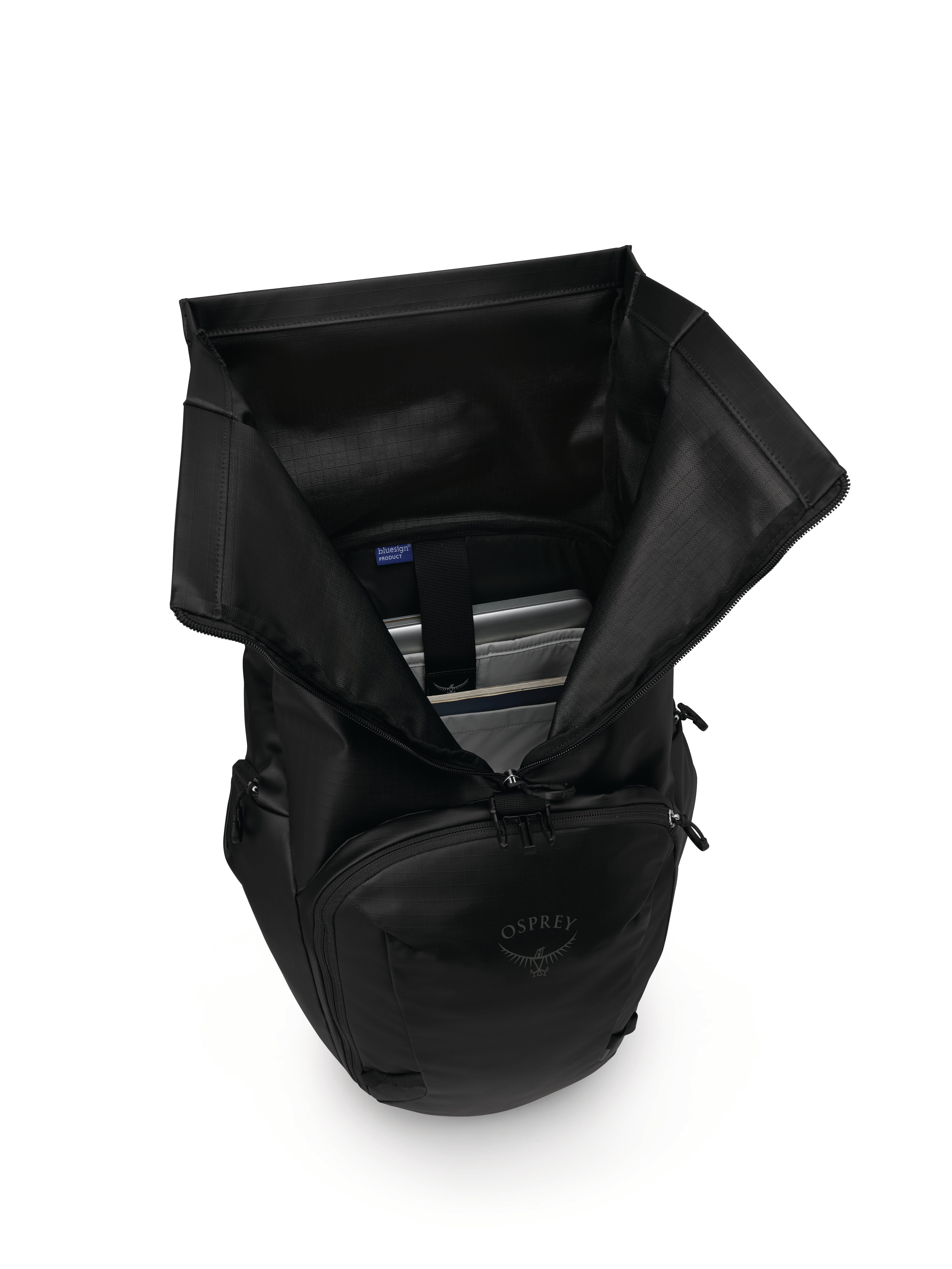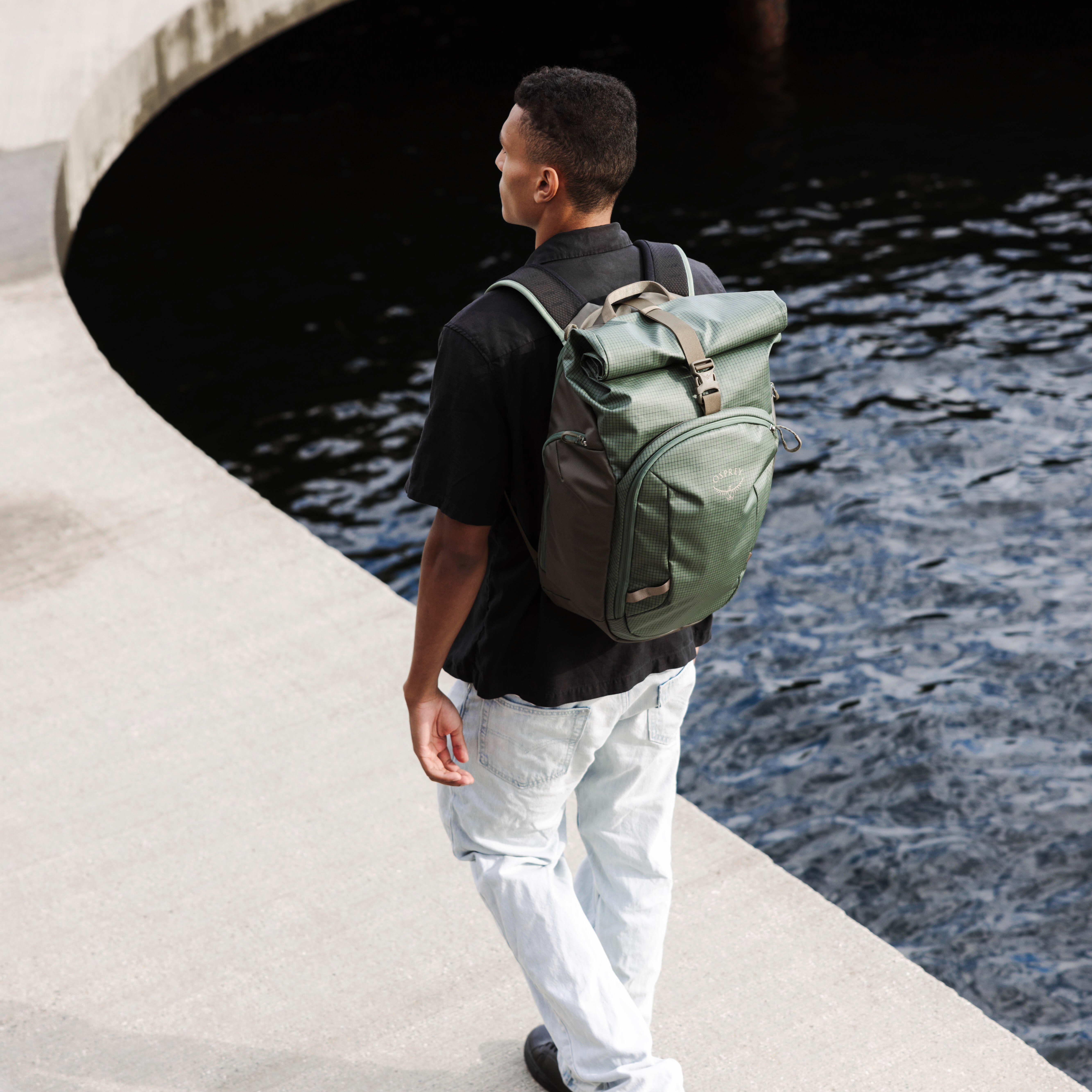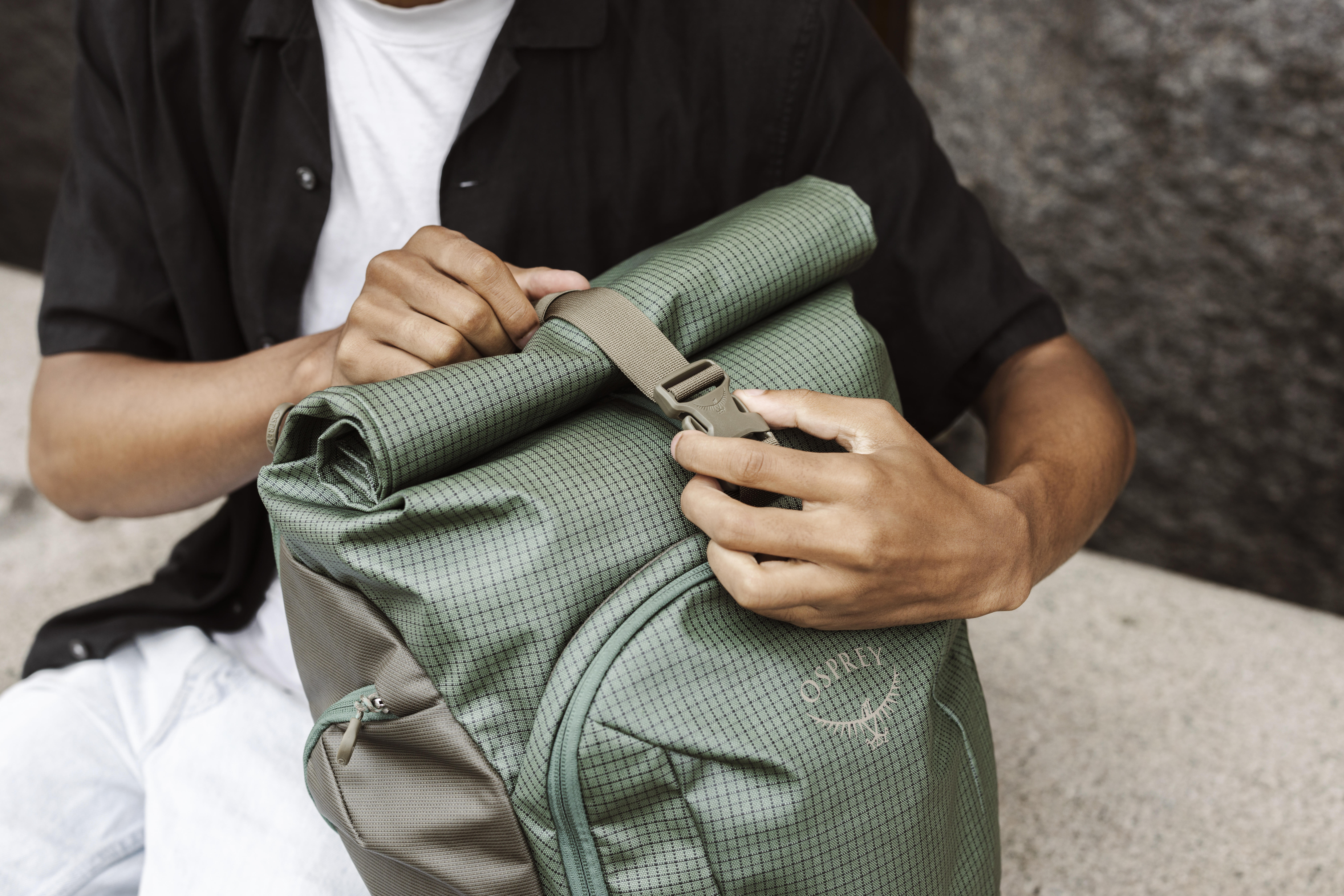 是一款專為日常通勤和都市戶外生活打造的高耐用防水背包。採用Osprey著名的NanoTough™面料,結合碳酸鹽塗層處理,帶來卓越的耐磨與防水性能。它具備經典捲頂設計,隨時調節容量並有效防止雨水滲入。配備 AirScape™ 背板與人體工學肩帶,長時間背負依然舒適,是城市中追求質感山系生活的最佳選擇。