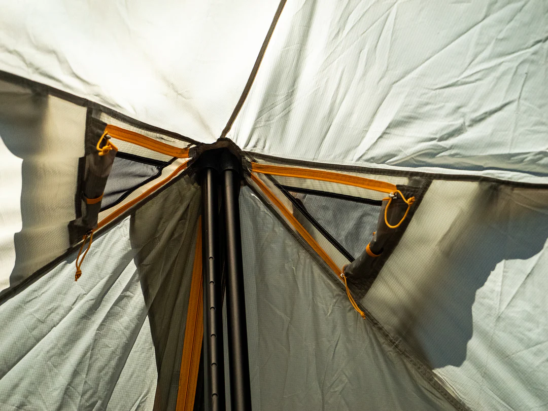 帳篷頂部和側面共設有六個通風孔,幫助排出濕氣,維持空間乾爽舒適。