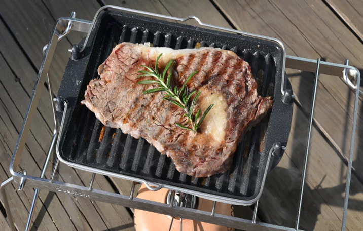 - 適合燒肉、烤魚、煎扒等多種營地料理,也可放於明火或爐具上使用。