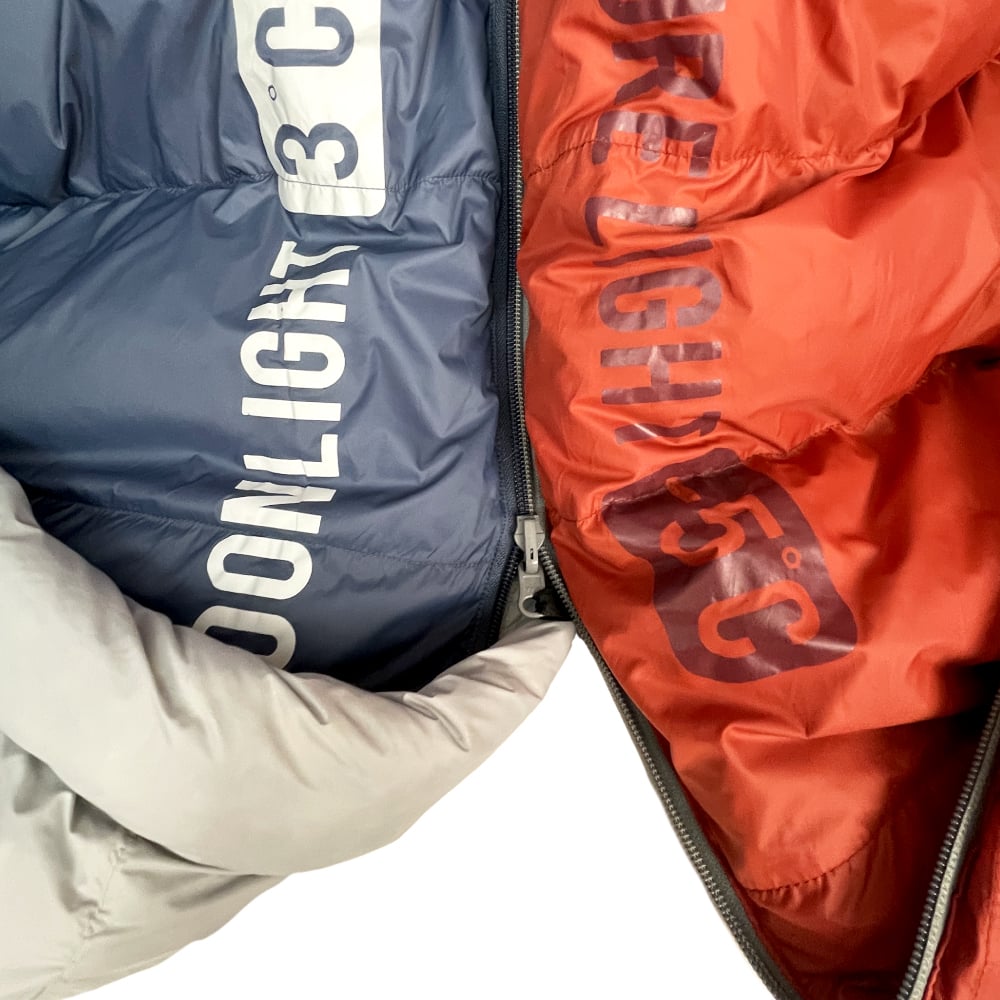 Moonlight 系列為半信封式剪裁設計,獨特的拉鍊設計,可和木乃伊型睡袋連結,也可擁有信封式睡袋的特點把睡袋全開,適合在較暖的天氣下使用,更可以在室內作羽絨被使用,用途廣泛。