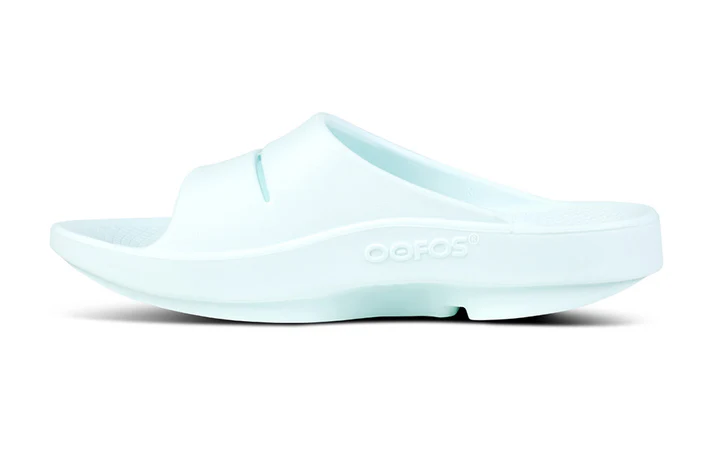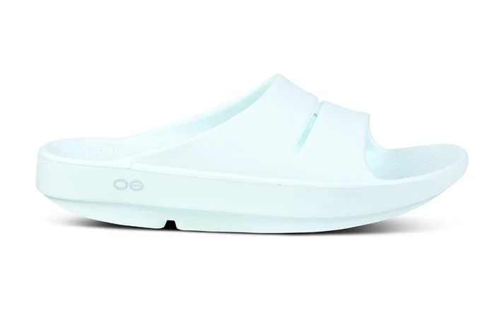 OOFOS OOahh Slide 採用橫帶 Slide 設計,無夾腳趾結構,結合專利 OOfoam™ 發泡技術,能吸收比傳統材料多 37% 衝擊力,提供卓越緩衝和支撐。閉孔泡棉材質具備天然抗菌防臭功能,可機洗清潔,特別適合運動後恢復、居家或戶外營地使用,是追求舒適與功能並重的理想選擇。